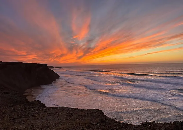 Situated 2.4 km from Arrifana Beach Surf Spot, Ocaso - Aljezur Sea View Stunning Sunsets Arrifana Apartment provides guests with Wi-Fi for either business or leisure. To keep up with a sport routine, hiking, fishing, and yoga are offered, along with a golf playground.